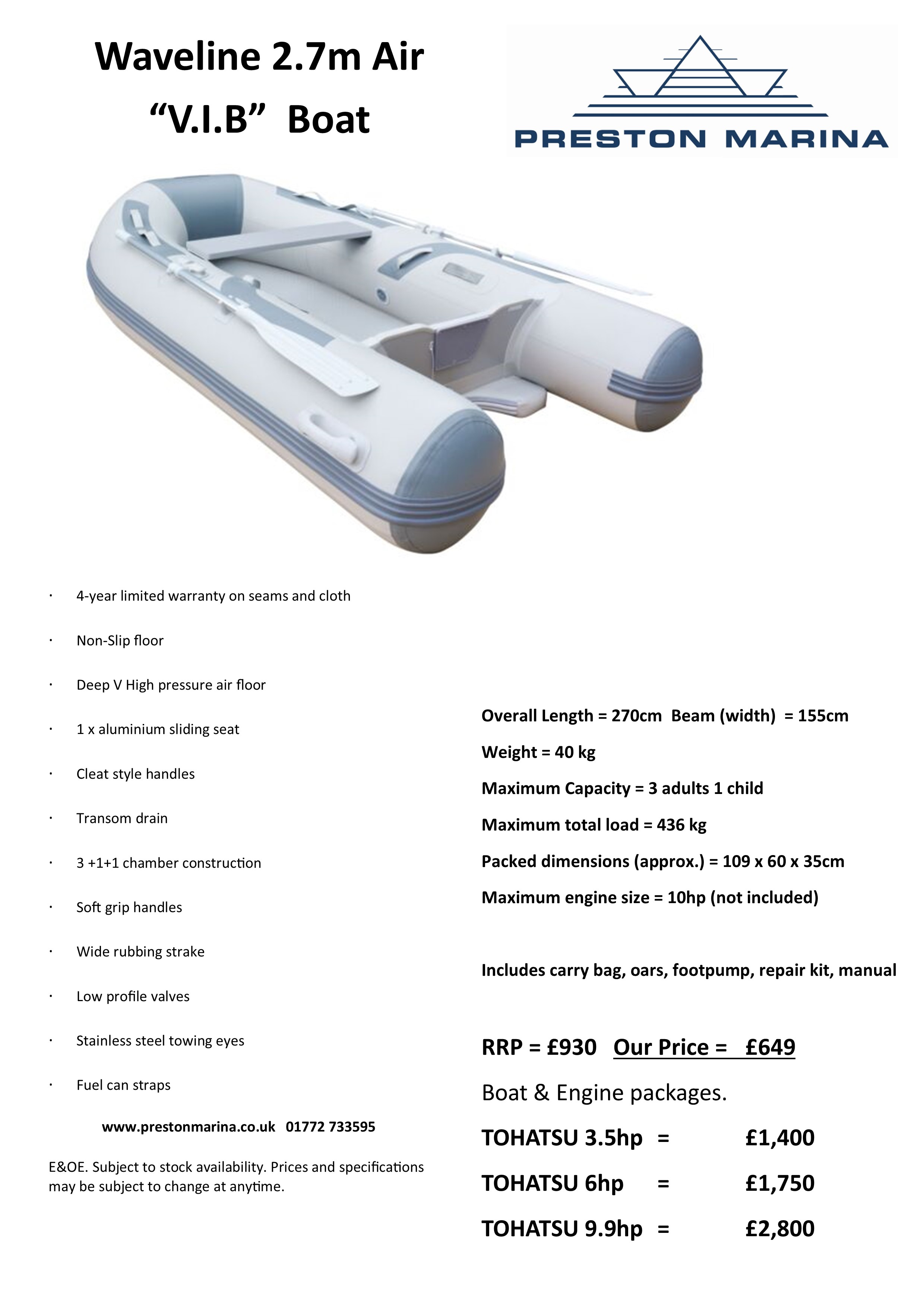 PLEASE NOTE – We don’t do mail order of inflatable boats or engines.